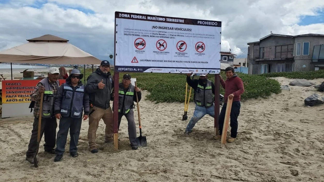 Signs were created and posted on multiple beaches in response to the outcries about the heavy ATV traffic. Although too small to see in this photo, the Punta Banda Conservation Alliance is included among the logos along the bottom of the sign acknowledging entities responsible for making these signs happen.